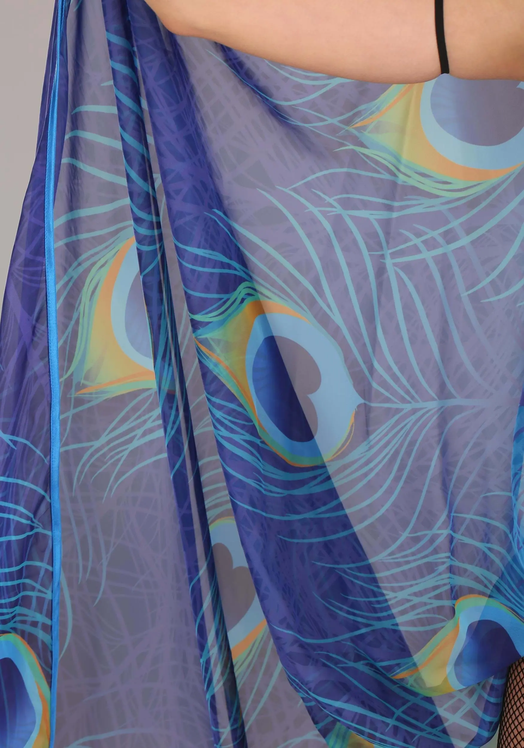 - Chiffon skirt has a peacock pattern w/ satin blue ties