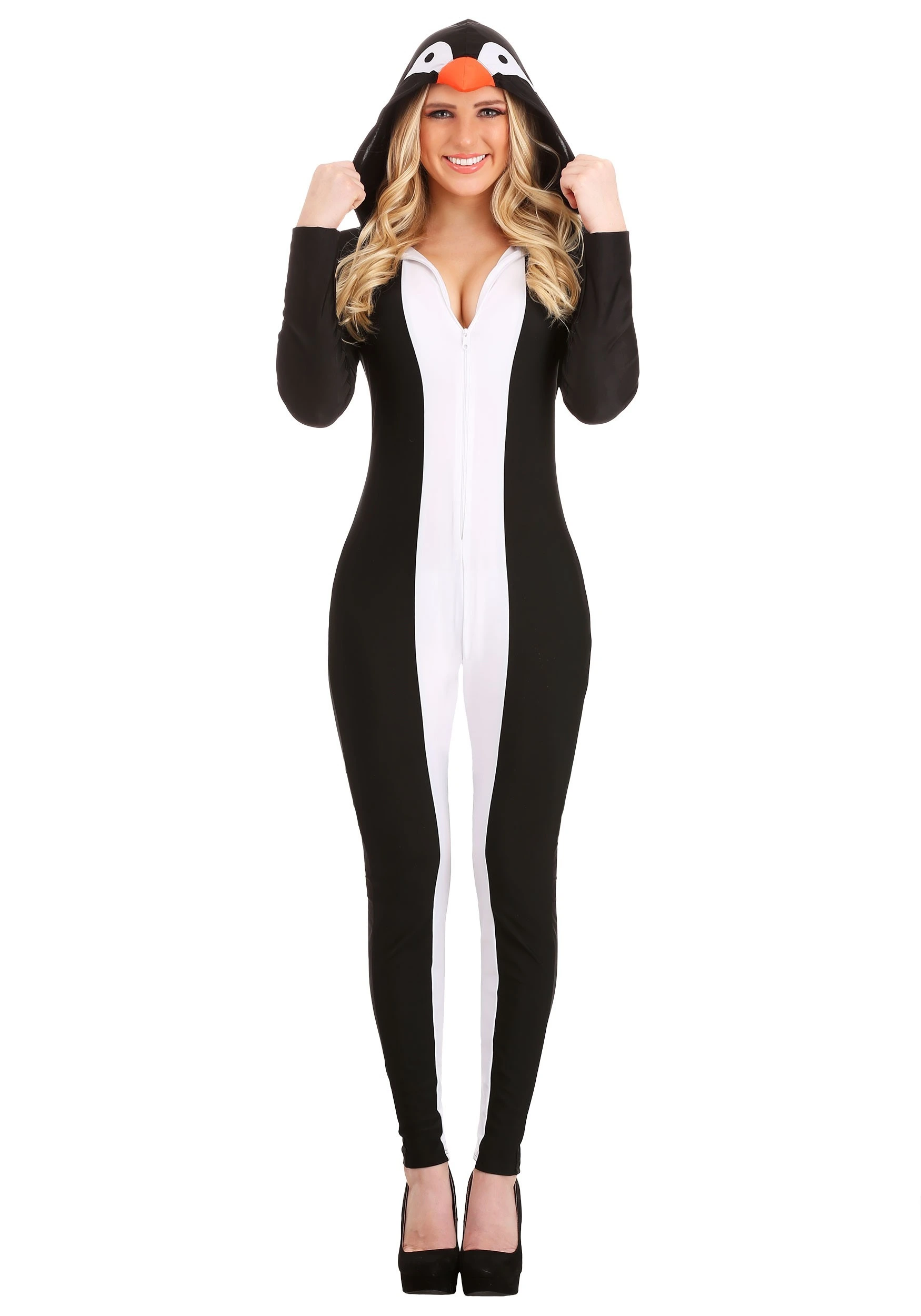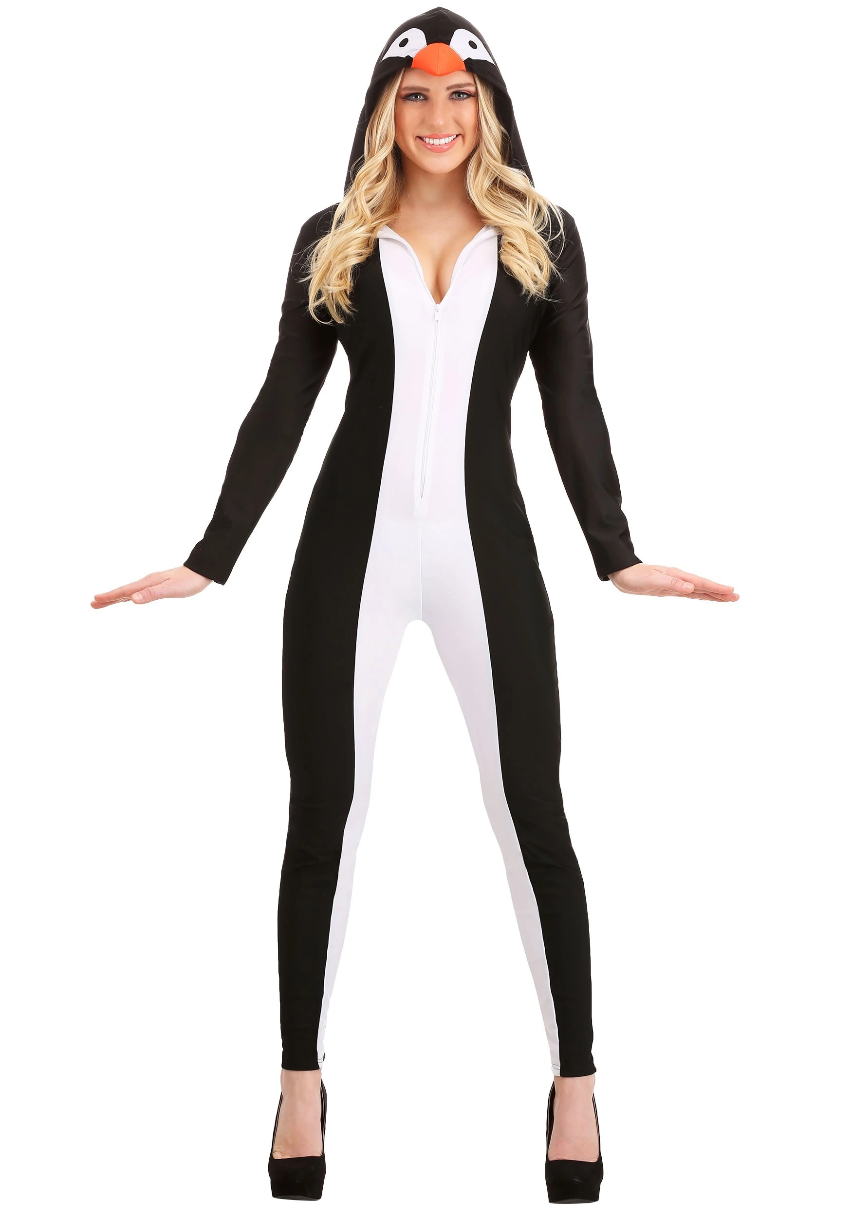 You’ll be polished and pretty wearing the Women’s Polar Penguin Costume. A completely black and white look, this Made by Us ensemble is both fashionable and high-quality. A jumpsuit is a simple and sleek way for ladies to be stylish and this particular one will transform you into the Antarctic’s cutest bird. The form-fitting jumpsuit has a full zipper in the white center panel as well as an attached hood which completes the look. Put up the hood to showcase the adorable penguin face with a stuffed beak and two black eyes. Complete the ensemble with a pair of black high heels then waddle on your way.