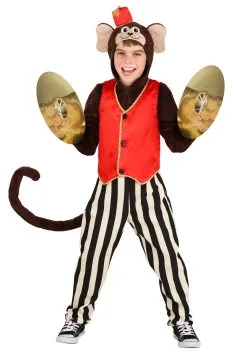 Start with the hooded jacket. The hood has all the adorable features of a monkey sewn on. Next, you can add the red vest. It has gold edging and three black buttons. It will make your little one look quite professional… for a monkey. Lastly, you have a pair of black and white striped pants. There is a charming brown monkey tail attached to the back of the pants. Don’t forget to check out our monkey accessories!