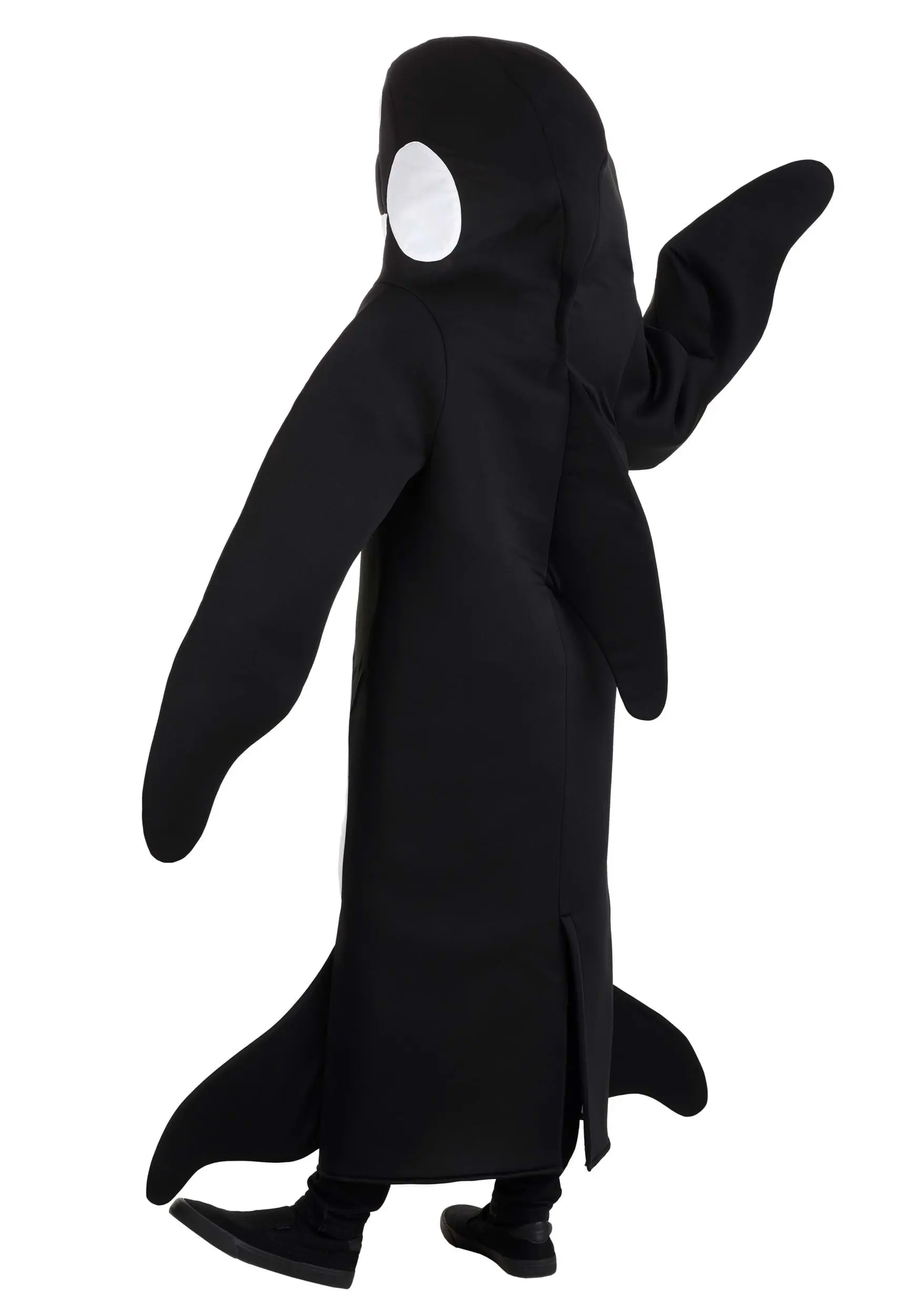Have a whale of a time while you’re wearing your exclusive Orca Costume for Adults! The unisex outfit consists of a long tunic made of black and white polyester and backed with foam to help it keep its sea creature shape. A foam-stiffened dorsal fin is attached to the costume’s back. The fin-shaped sleeves have slits at the ends to allow your hands to poke through. The attached hood is decorated with appliqued eyes and features a view port that’s shaped like a mouth and sewn with felt teeth.