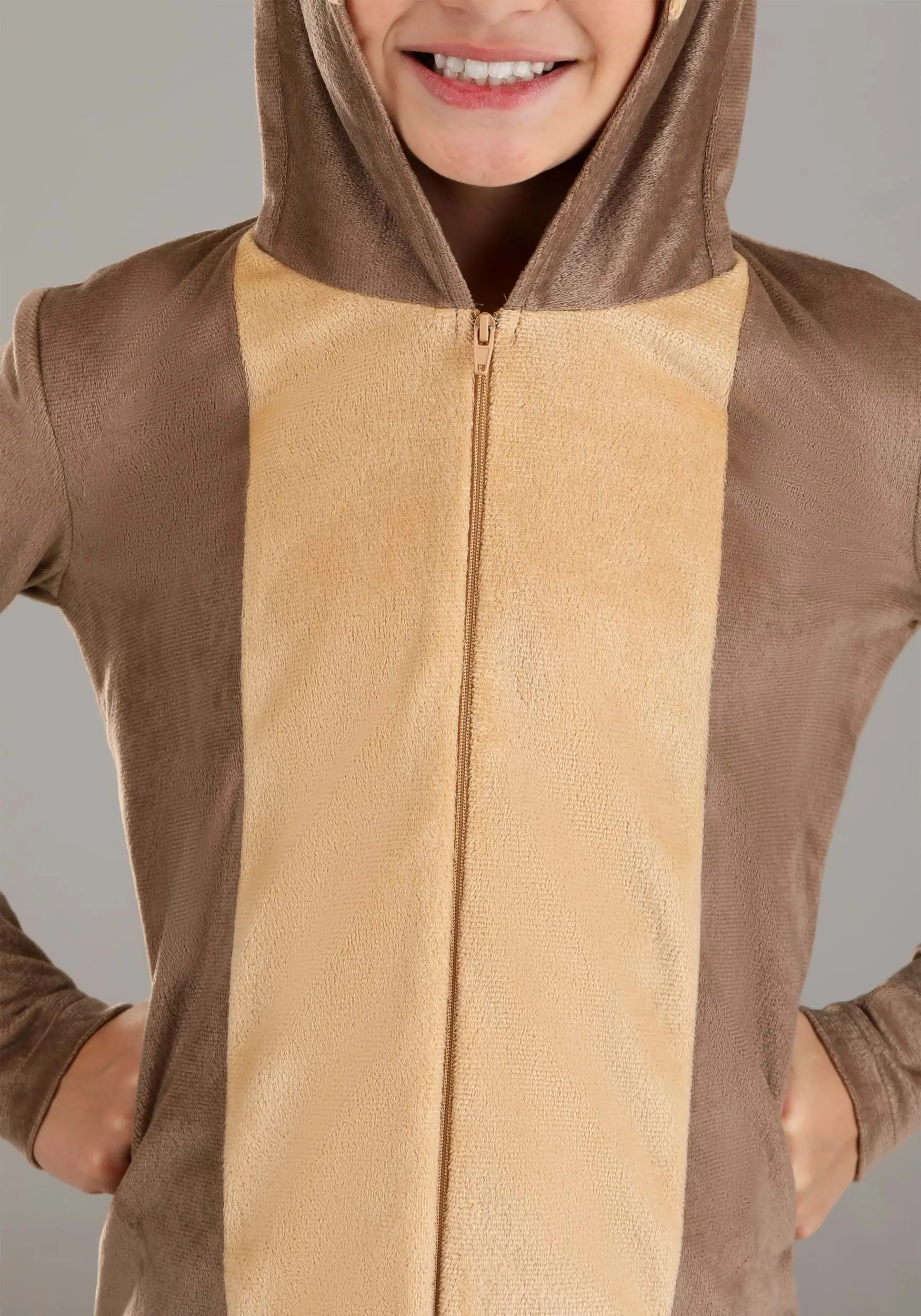 Be “otterly” amazing in your exclusive Otter Costume for Kids! The one-piece jumpsuit zips up the front and is made of extra soft brown cuddle plush polyester fabric. An oval-shaped tan belly inset resembles an otter’s soft tummy and a tail stuffed with fiberfill is sewn to the jumpsuit’s seat. Pull up the attached hood to show off your fabric otter ears, as well as the cute embroidered eye, nose, and whisker details!