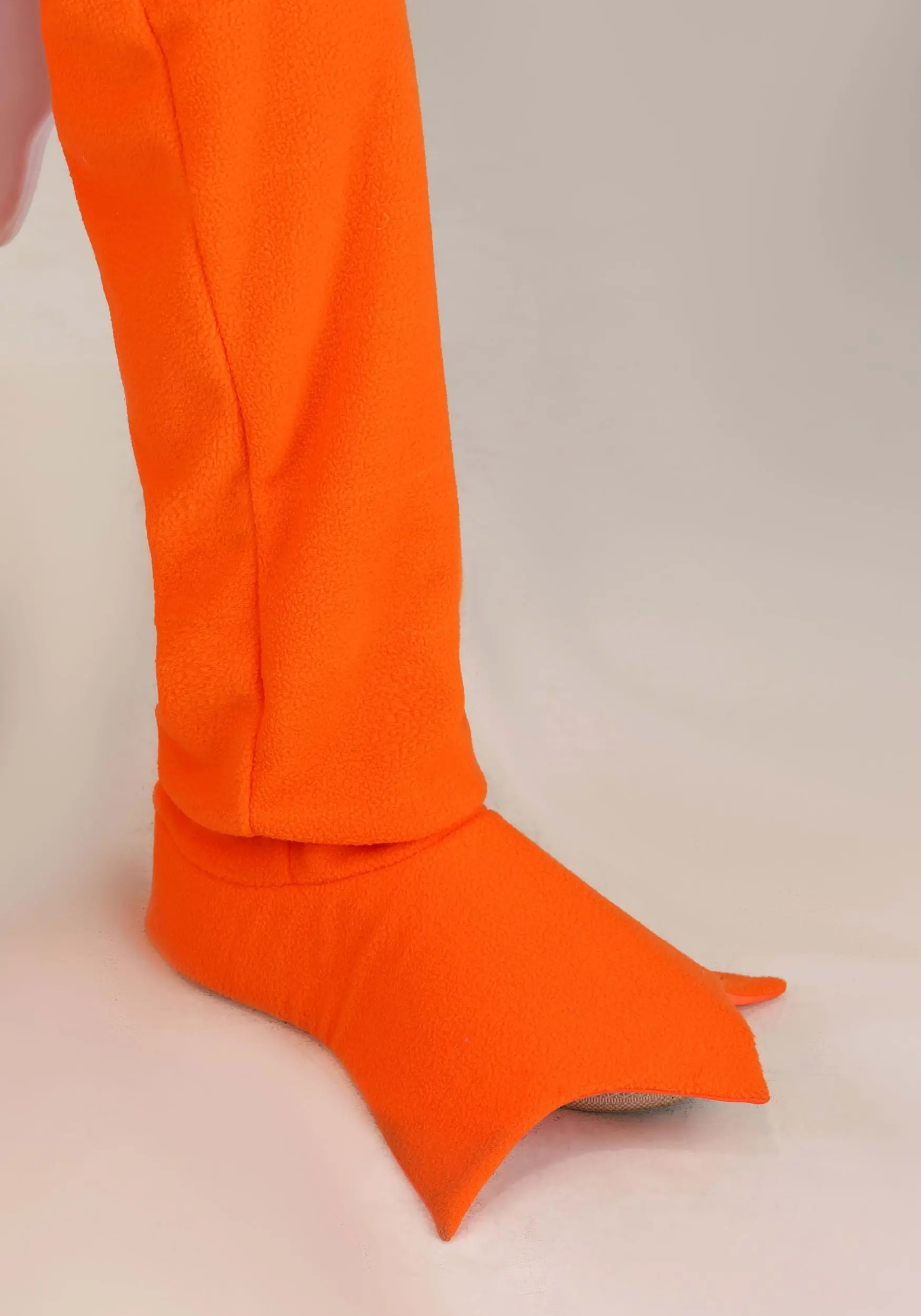 This aviary outfit comes right from our Made By Us design team and starts with a fleece tunic that is stuffed on the bottom to give it some extra volume. The sleeves have black feather designs to create a pair of wings and the orange pants have a pair of flippers created from sewn-on foam-backed footies! The hood has detailed eyes and a wireframe beak so you can pose yourself how you like!