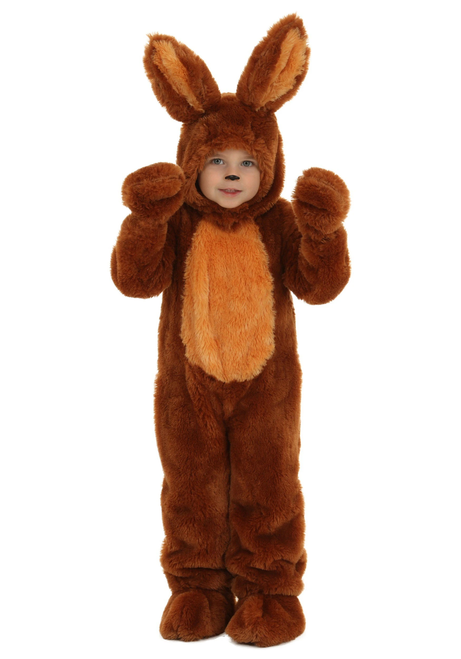 With this warm, cozy jumpsuit some “bunny” will be a happy trick-or-treater even on a chilly night! This exclusive brown bunny costume for toddlers is covered in soft plush fur and is as cute as it is comfortable. The 100% polyester faux fur jumpsuit has a zipper in the back so you can get your little one in and out of it easily. The mitts are sewn to the sleeves and they have elastic bands around the cuffs so they can easily access their hands while still getting a true bunny look. The matching shoe covers have an elastic ankle band and elastic underfoot so that they stay in place while your little one does their trick-or-treating. Finish the bunny look with the matching hood that has a Hook and Loop fastener strap under chin for a secure fit and ears with wires to hold their shape. This bunny costume is perfect for a chilly Halloween night!