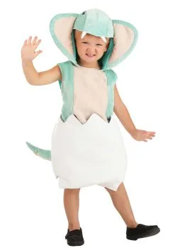 Your toddler will be hissing with delight when he or she wears this adorable Hatching Cobra Snake Costume for Toddlers! The exclusive costume includes a sleeveless romper made of green polyester velour with a beige inset and a diagonal front opening that makes getting dressed easy (in terms of dressing a toddler, anyway). Elastic in each pant cuff keeps the outfit in place and a stuffed tail is sewn to the romper’s seat. The attached hood has stiffened, beige-lined threat flaps sewn to each side. Embroidered eyes and soft-sculpted white serpent fangs make the costume look fierce yet fetching. The foam-backed shell accessory slides up the legs and fits over the romper’s bottom half like a pair of briefs, thanks to the slit in the back for the tail, and can be attached to the suit.
