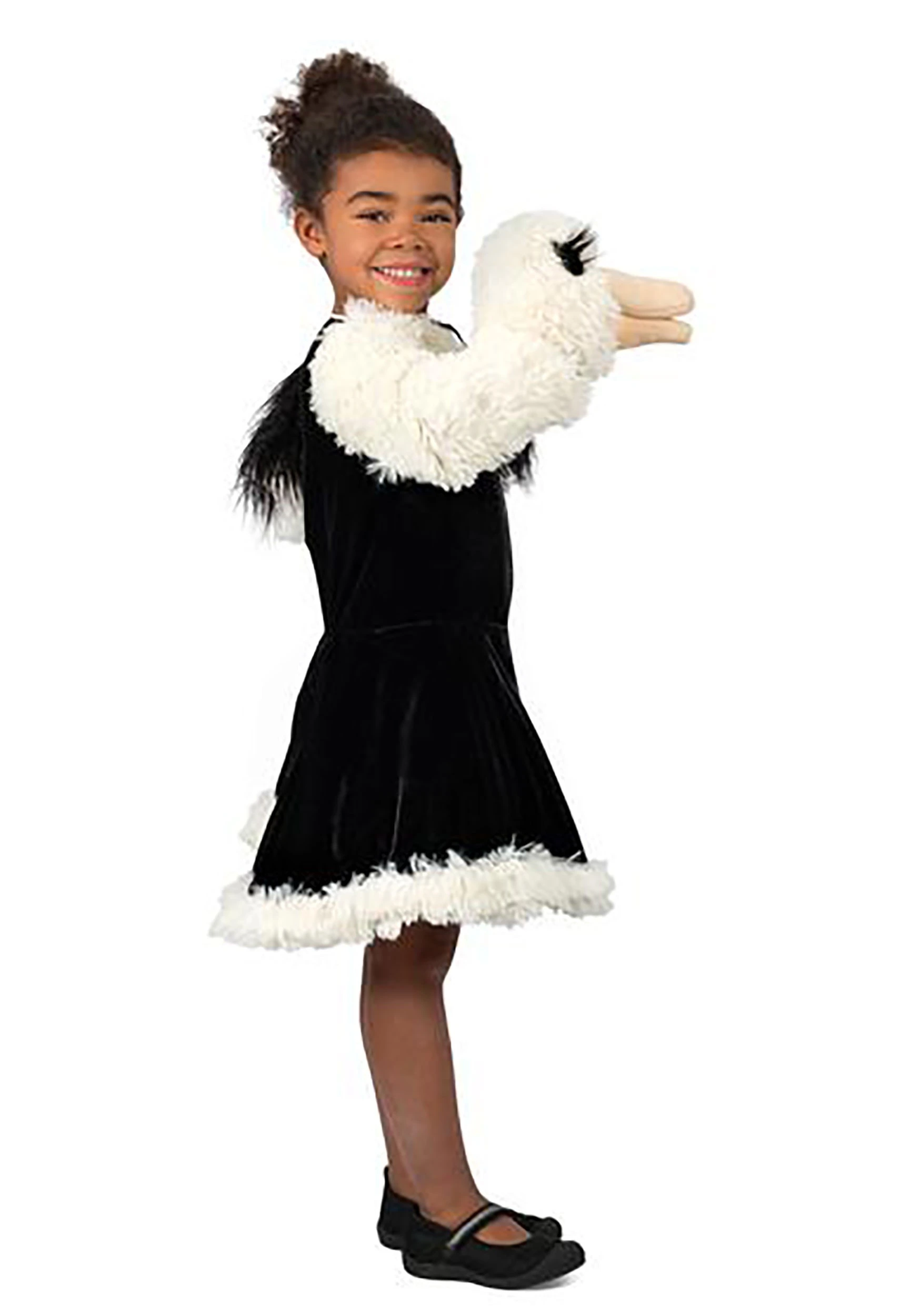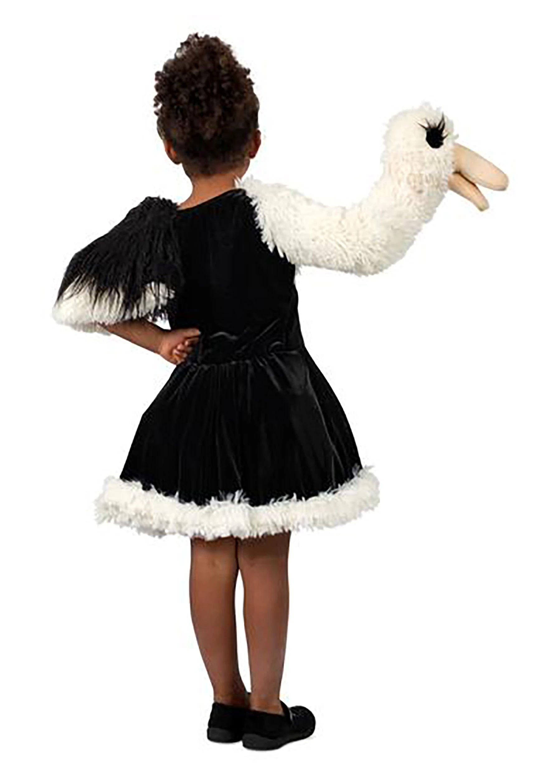 That makes us want to stick our heads in the sand. But don’t stick your Girls Puppet Ostrich Costume’s head in the sand, because the face is one of the best parts. Just look at those eyelashes! The costume is a dress-based ensemble featuring a built-in petticoat and a ostrich-head puppet on the right sleeve. It flips back to free your hand if you need to ever halt the illusion!