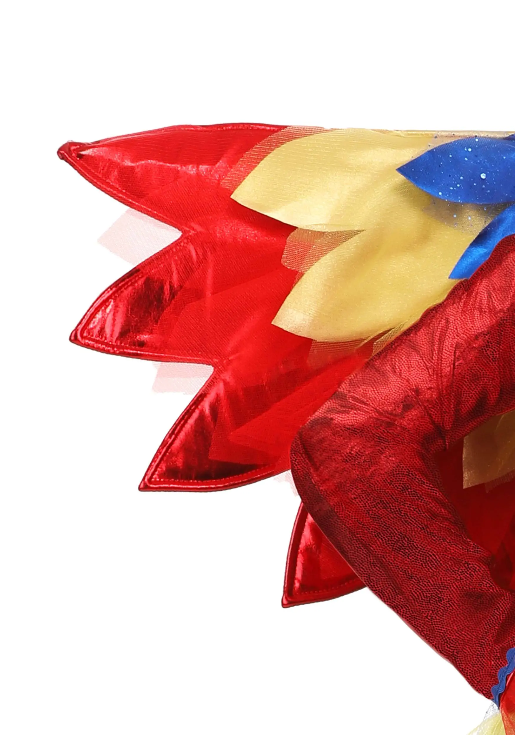 Crafted feather by beautiful feather by our in-house design team, this high-quality, exclusive costume is bound to help your child’s high-flying Halloween dreams. The red dress has a sequined bodice and colorful cuffs, as well as a rainbow tail of tulle that trails behind it. The incredible wings boast panels of red, yellow, blue, and green and create incredible plumage worthy of your show-stopper, and the sequined headband holds a delicate parrot head, complete with a beak and more “feathers” of tulle.